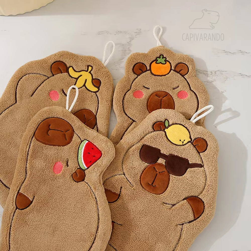 A Toalha de Mão Capivarando®, feita de tecido velo coral ultra macio, é a escolha perfeita para adicionar um toque de fofura ao seu dia a dia. Com um design adorável de capivara, ela não só proporciona uma sensação aconchegante ao toque, como também seca rapidamente. Compacta e prática, essa toalha é ideal para usar na cozinha, banheiro.